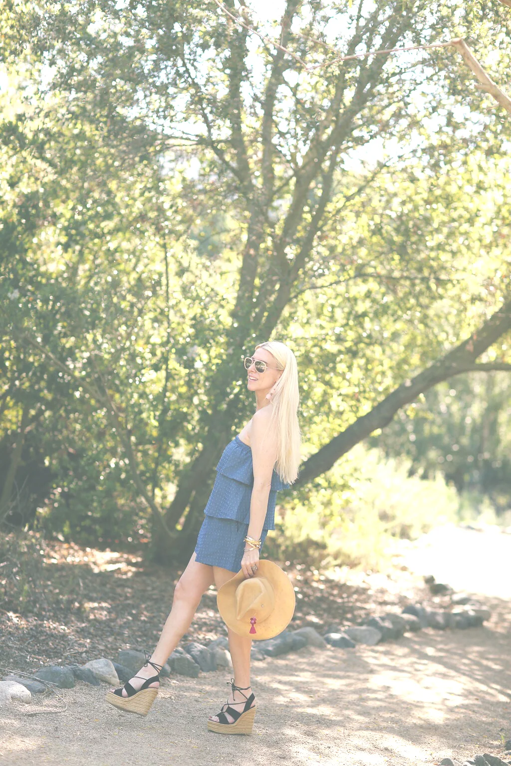 {Blogged with the Bachelorette and a root beer} Doesn't summer feel more summer-like in summer-like clothes? I'm talking cut-off shorts, crisp white tees, sundresses, kaftans and yes, the romper. I love them, in all shapes and styles- long sleeve jumpsuits and this cute strapless romper. Rompers are easy- just pull them on and go (and really, isn't easy what summer is all about?) If I am going to dinner, I would throw on a cardigan or a bomber jacket, but for day time, these wedges (or even flip flops or sneakers) are all you need.